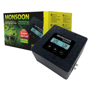 Le système programmable de brumisation Monsoon NANO Exo Terra est équipé de deux becs pulvérisateurs en laiton faciles à installer, mais peut contenir jusqu’à 4 becs pulvérisateurs, le rendant idéal pour une utilisation avec un terrarium et jusqu’à deux terrariums. La brume produite par les becs pulvérisateurs en laiton spécialement conçus est extrêmement fine, créant un effet de brouillard dans le terrarium ou la serre.