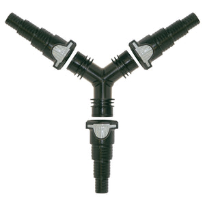 Évitez la réduction de débit causée par des raccords en T grâce au nouveau raccord en Y Laguna. Comprenant 3 raccords autobloquants brevetés qui simplifient l’installation, les raccords en Y permettent de nombreuses combinaisons. - Façon rapide et efficace de diviser le parcours de l’eau sans en réduire le débit. - Permet d’utiliser de nombreuses dimensions de tuyaux avec un même système.