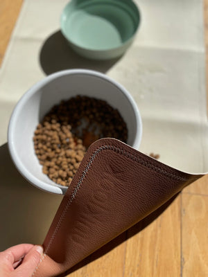 Fabriqué à partir de cuir végétalien de haute qualité des deux côtés, ce tapis est conçu pour donner une touche chic à votre maison tout en offrant une surface durable et facile à nettoyer pour les bols d’aliments et d’eau de votre animal de compagnie. Dites adieu aux déversements et à la saleté sur vos sols – notre tapis pour aliments pour animaux de compagnie allie sans effort praticité et esthétique, ce qui en fait le complément parfait à la maison de tout amoureux des animaux. Magasinez maintenant et offrez à votre animal de compagnie l’expérience culinaire ultime!