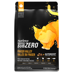 La nourriture Nutrience SubZero pour chats est faite au Canada avec de la volaille et du poisson sauvage frais, jamais congelés de sources canadiennes pour une qualité digne de votre confiance. Ces croquettes à base de proies et riches en protéines sont combinées à du NUTRIBOOST cru séché à froid pour fournir une alimentation optimale et l’essentiel pour la santé, la vitalité et la longévité des chats. Même les plus fines gueules ne pourront résister à cette nourriture. Nous vous promettons une nourriture qui répond aux normes nutritionnelles les plus élevées et qui satisfait également le palais fin de votre chat.