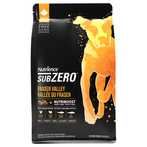 Les aliments Nutrience SubZero Sans grains Vallée du Fraser pour chiens respectent les exigences nutritionnelles stipulées dans le tableau Dog Food Nutrient Profiles de l’AAFCO pour toutes les étapes de vie.