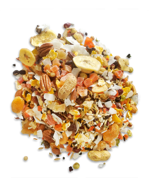 Un assortiment généreux et naturel de de fruits et légumes séchées, de noix exotiques, de légumineuses, de graines et de céréales du monde entier. Les mélanges de friandises Goldenfeast sont conçus pour ajouter de la variété et compléter le régime alimentaire régulier de votre oiseau.