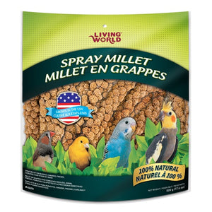 Le Millet en grappes Living World est un régal nutritif de première qualité pour tous les oiseaux de compagnie. Constituant une bonne source de glucides faible en matières grasses, ce savoureux régal extrêmement digestible est fait de millet entièrement naturel, cultivé aux États-Unis, fraîchement récolté dans la nature et ne contenant aucun additif.