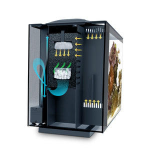 The all-new SPEC 60 L (16 US gal) aquarium features an efficient 3-step filtration system, and it stands out with its powerful 7,000 K high-brightness LED lighting system. This lighting system is integrated into the ingeniously designed new lid, making it the brightest in the SPEC line in more ways than one!