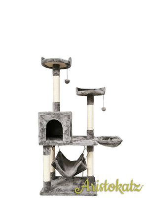 Ideal for clawing with its sisal poles, climbing, playing, sleeping or being in the heights with its platforms. This tree offers all these elements for fun and sleep. Ideal for smaller spaces. Is your cat giving your furniture a hard time? All the posts are covered with sisal so he can do his claws.