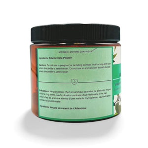 Atlantic Kelp is a source of bioavailable minerals, vitamins, and beneficial phytonutrients. Kelp's minerals are essential for proper immune and thyroid function, with over 60 vital minerals, amino acids, and vitamins. These benefits make it an excellent supplement for skin & coat health and may help with clearer eyes and immune response.We packaged it in a recyclable black jar with a 1/4 teaspoon for easy serving.