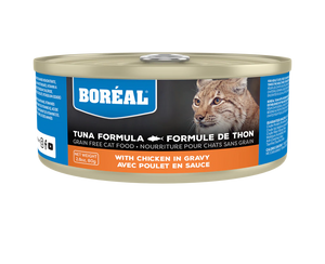 Nos aliments en conserve pour chats Boréal contiennent 95 % de viande et sont conçus pour ne pas contenir de glucides afin de réduire le risque de prise de poids indésirable. Notre série de thon rouge est faite avec de la viande de thon rouge de muscle foncé et comme toutes nos nourritures de chat en conserve un libre de céréales, de grains, de couleur artificielle ou de sel ajouté.