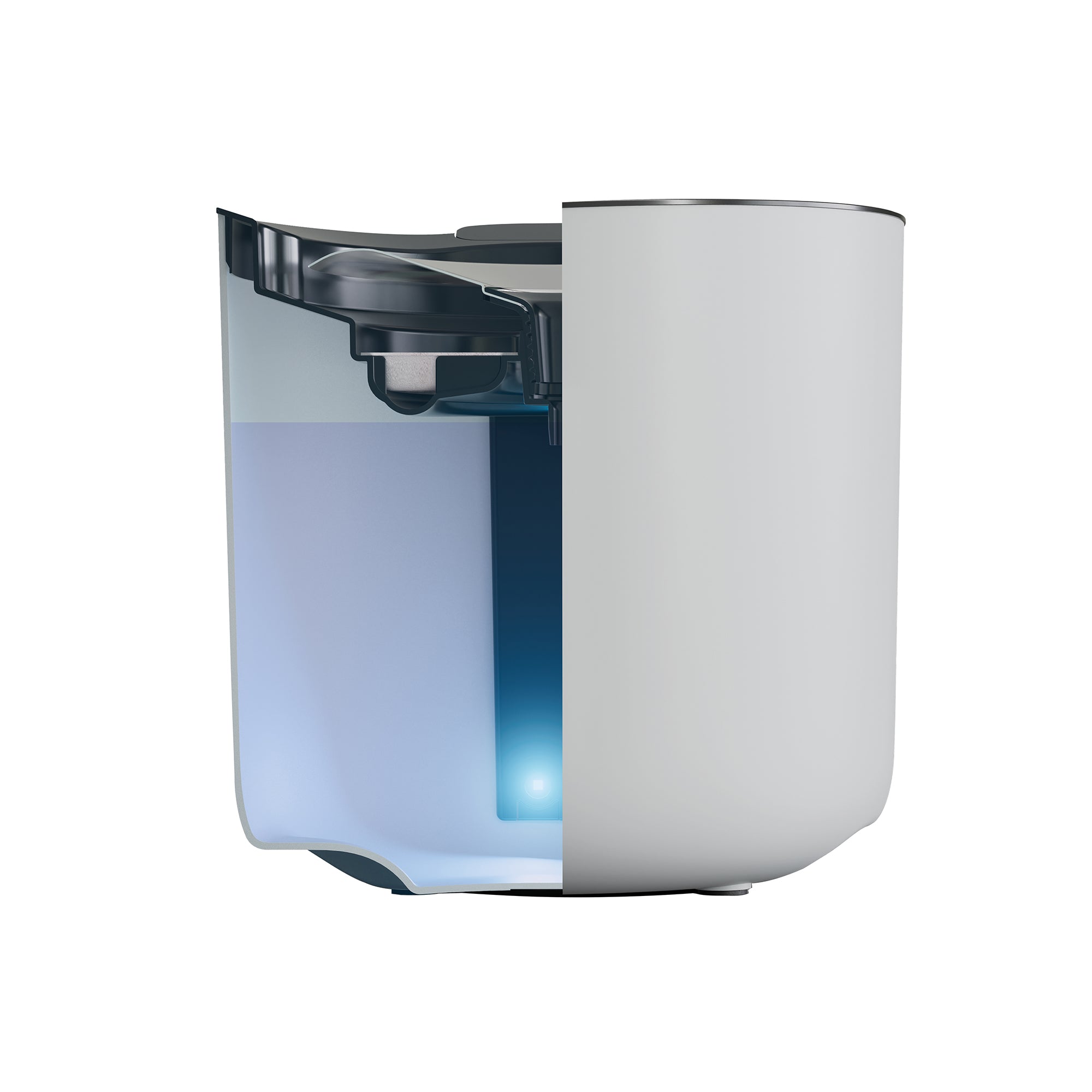 The UVC module in the Zeus Oasis PLUS waterer uses ultraviolet light to prevent cloudy water, which is perfect given the many different particles that can end up in your dog's water. This natural water clarification process is initiated automatically a few times a day and works entirely without chemicals. The Zeus Oasis PLUS waterer features a highly efficient triple-action filter that traps debris and other impurities. The continuous circulation of water through different filter media helps absorb unpleasant odors, as well as excess calcium, magnesium and chlorine from hard tap water.