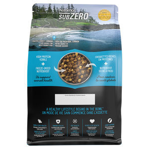 Nutrience SubZero dog food is made in Canada with fresh, never-frozen wild fish from Canadian sources for quality you can trust. These protein-rich, prey-based kibbles are combined with cold-dried raw NUTRIBOOST to provide optimal nutrition and the essentials for dog health, vitality and longevity.