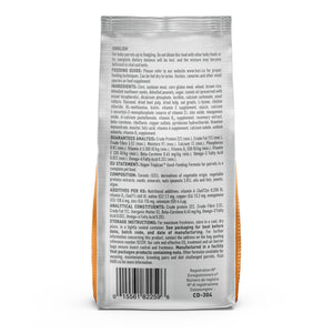 Maïs moulu, tourteau de soja, farine de gluten de maïs, blé moulu, riz brun moulu, graines de tournesol décortiquées moulues, arachides décortiquées moulues, sucre, huile de colza (conservée avec un mélange de tocophérols), phosphate bicalcique, carbonate de calcium, levure séchée, graines de lin moulues, lécithine, pulpe de betterave séchée, varech séché, gruau d'avoine, L-lysine, chlorure de choline, DL-méthionine, biotine, supplément de vitamine E, niacine, calcium L-ascorbyle-2-monophosphate, oxyde de zinc, oxyde de manganèse, D-pantothénate de calcium, supplément de vitamine B12, extrait de romarin, bêta-carotène, sulfate de cuivre, chlorhydrate de pyridoxine, mononitrate de thiamine, inositol, acide folique, supplément de vitamine A, iodate de calcium, sélénite de sodium, supplément de vitamine D3.